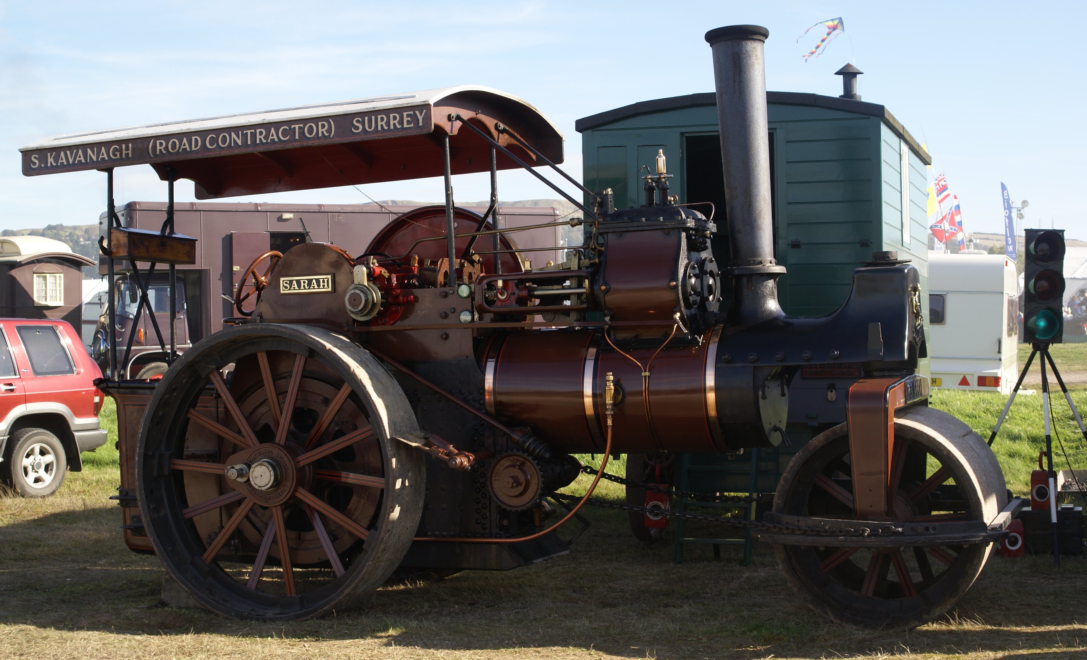 Year of Manufacture: 1894. Owner: Peter Smith. Works No: 3430. Reg. No. PB 9801 Weight: 10 Tons. History: Supplied new to Messrs Stephen Kavangh, of Tolworth, Surrey on 26th September 1894 Worked with them until 1955, and then sold for scrap to J.W. Hardwick of West Ewell in 1957. Saved for preservation in 1968 and originally restored by A.H. Overington in 1970, named Sarah after his daughter, attended its first steam rally in Dorking in 1972. Purchased by the present owner in 1983.between 1990-1996 a major restoration took place including a new fire box. Presented today in the fleet livery of her original owner.